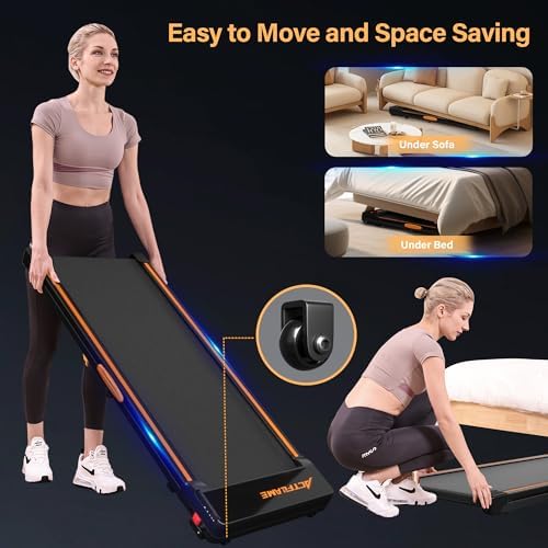 Compact Treadmill for Easy Movement: The compact under desk treadmill is just 4.5 inches thick even with incline function, it is still very thin and light. The treadmill has two front wheels, allowing you to easily move and place it under a desk, bed, or sofa. Our under-desk treadmill requires no installation and is ready to use right out of the box.