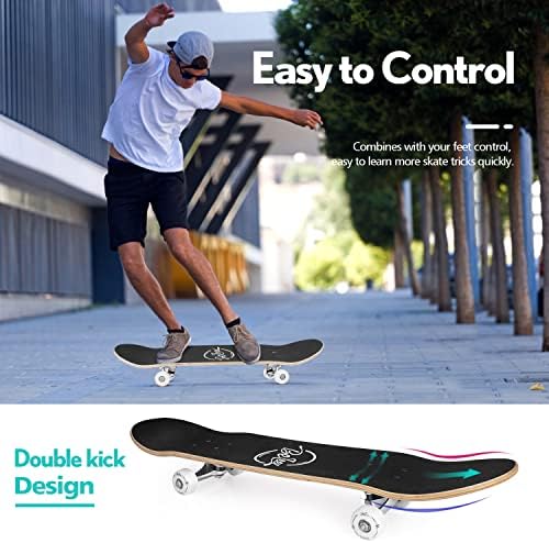 Easy to Control: Double kick symmetric concave design for easier braking and allows more energy from your heels to toes. The waterproof emery non-slip grip tape provides a great traction in between your shoes and the board for a safe riding experience. Keep you riding steadily with lots of control and balance. In addition, it has great grips that are not prone to scratches or ripped off easily.