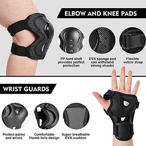 Set contains – 2 x Knee Pads, 2 x Elbow Pads, 2 x Wrist Guards. Skating protective gear are also the good choice as the gift for Christmas, Children’s Day, Birthday, Thanksgiving etc.