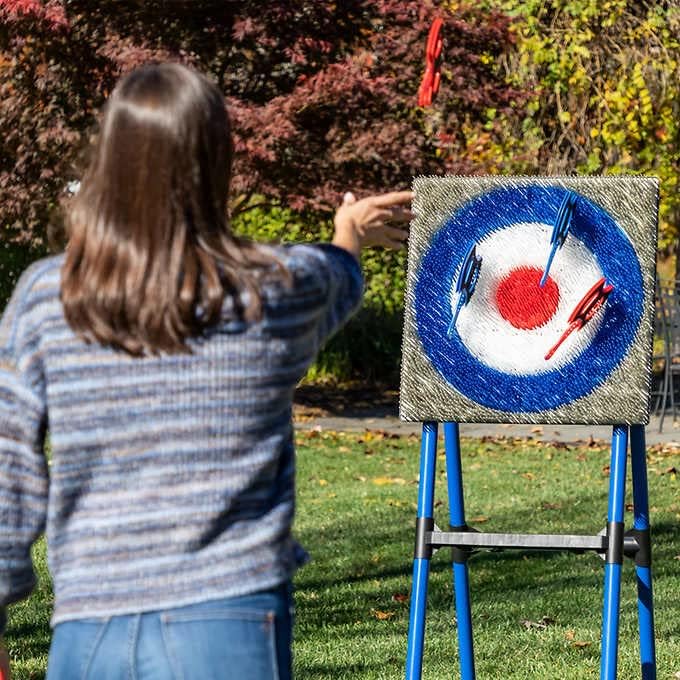 Includes : 1 – Axe throw target and 8 – Safety axes