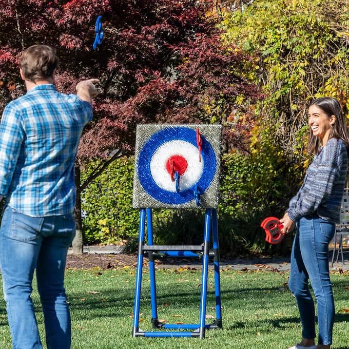 Grab your safety axe, take aim at the target, and go for the bullseye! The safety axes and bristle target equals great outdoor fun!