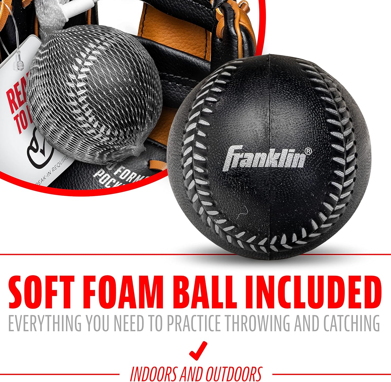 FOAM BALL INCLUDED: This glove comes with its own soft foam baseball so you’ll have everything you need to practice throwing and catching whether you’re indoors or out