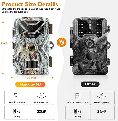 Hawkray Trail Camera 30MP 2K,Game Camera with Wide-Angle Motion Latest Sensor