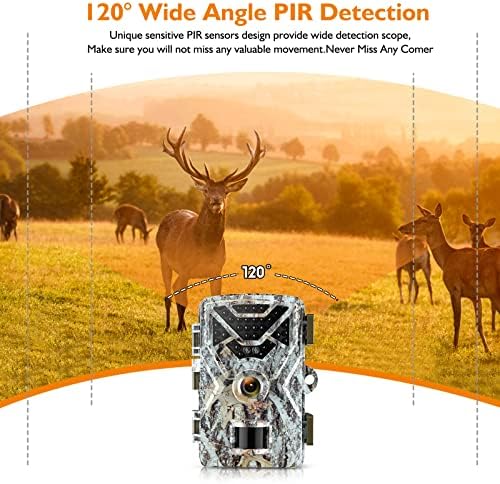 【EXCELLENT NIGHT VISION &120° Wide Angle】 The game camera built-in 34pcs 850nm infrared lights.Low-glow infrared technology is more concealed and not easily detected by animals.And this trail camera has 120°wide-angle detection range, which can capture more wonderful images and allow you to get a wider field of view.