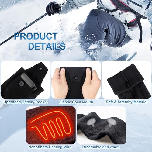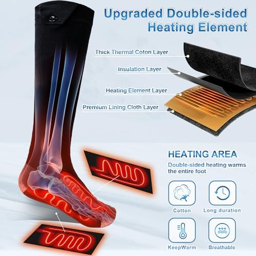【Heated Socks】These heated socks for men and women are made of pure cotton and feature a double-sided heating design, with the main heating areas being the ball and instep of the foot, bringing continuous warmth to your feet. Also, there is a battery pocket on both sides of the cotton socks for easy battery placement, which is perfect for outdoor sports, skiing, camping, hiking, hunting, and keeping warm.