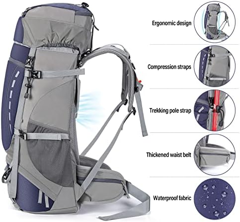 HOMIEE 50-60L Hiking Travel Camping Backpack for Outdoor, Waterproof Lightweight