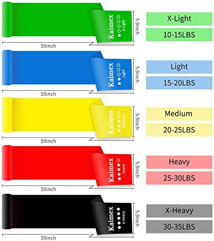 Kaimex Resistance Bands Exercise Bands Workout bands Elastic bands Stretch Bands Physical Therapy Tension Bands Fitness for Women Working out Yoga 5 Pack