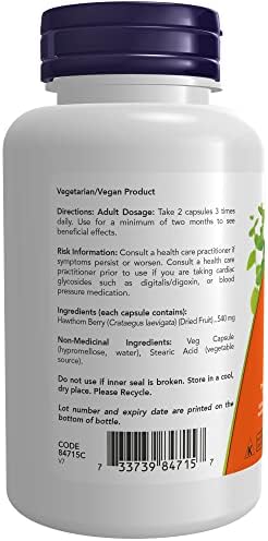 Ingredients: Each capsule contains: Hawthorn Berry (Crataegus oxyacantha) (Dried Fruit) 550 mg. Non-Medicinal Ingredients: Veg Capsule (hypromellose, water), Stearic Acid (vegetable source).