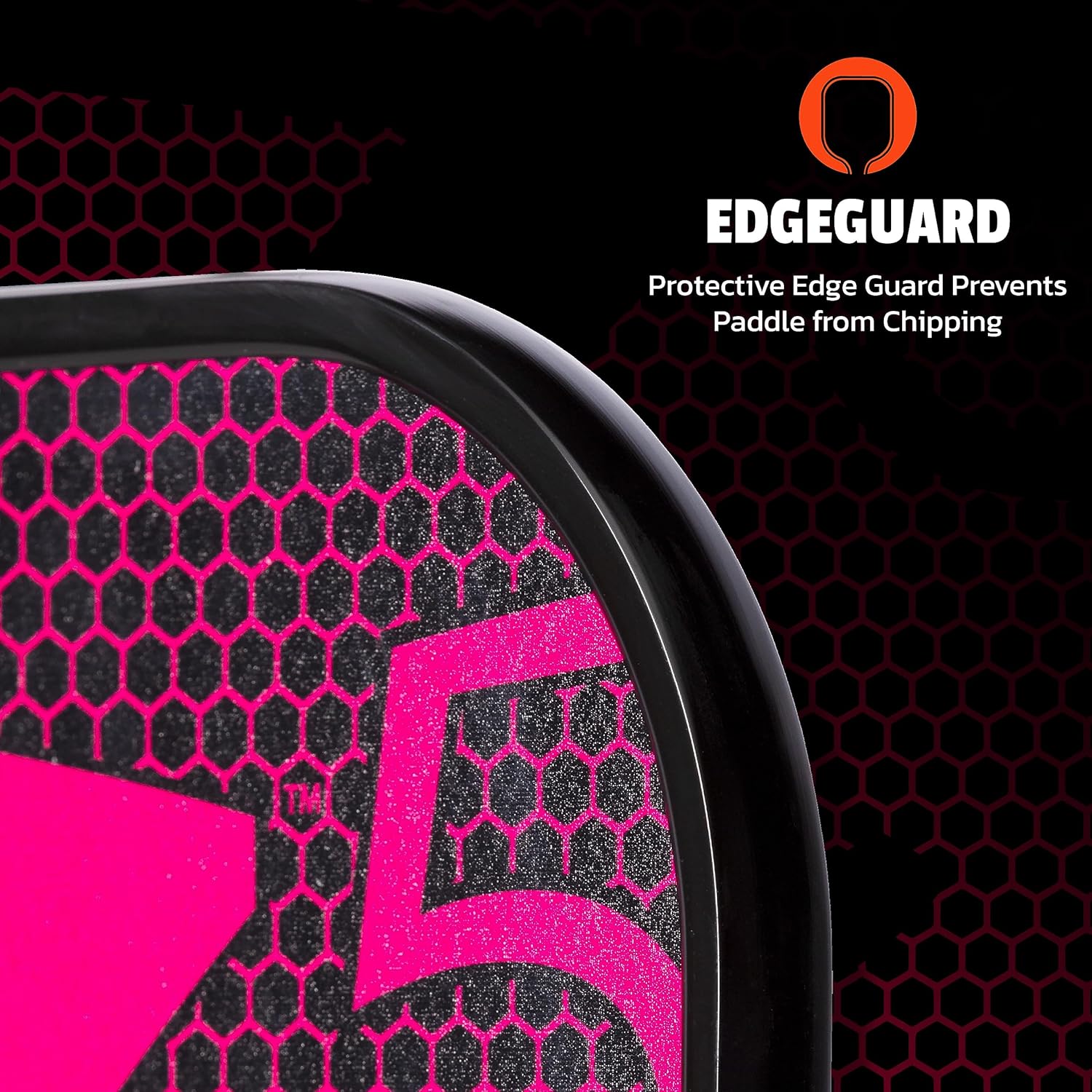 TENNIS HANDLE SHAPE – Mimics the handle shape of a tennis racket, making it comfortable to us, as well as providing great spin and control during play to ensure your game is at its best. Each Z5 pickleball paddle is protected with an edge guard. This allows players to dive for shots without worry.