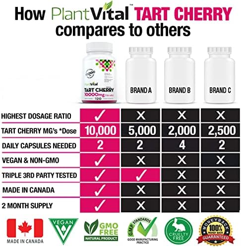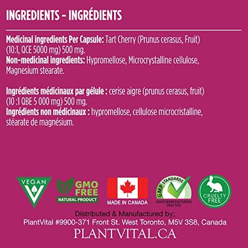 🇨🇦 PURCHASE TODAY 100% RISK FREE: Plantvital Tart Cherry Extract is manufactured under the strictest industry standards. We are a small Canadian family business that doesn’t answer to shareholders or investors. Our goal is to make the purest, additive free health enhancing products on the market. Our vegan Tart Cherry capsules are 100% Satisfaction Guaranteed. NPN 80117364.