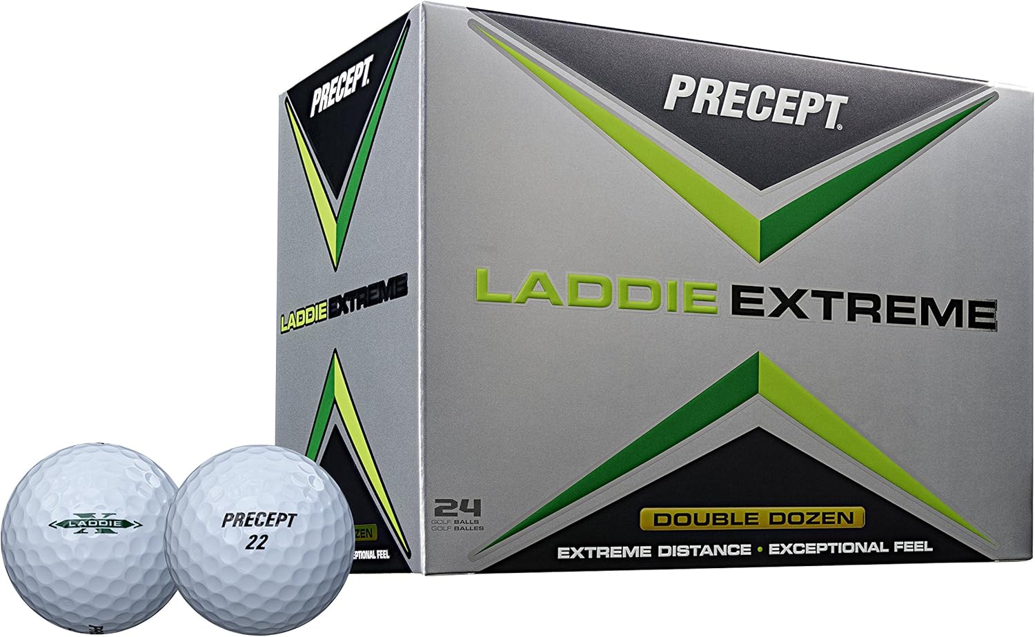 The laddie extreme generates extreme distance off the driver with high launch and low spin due to its enhanced muscle-fiber core. Soft feel comes from its touch N’ control lonomer cover providing great feel from tee to green. Available in white & yellow.