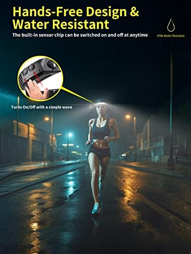 🖐【Hands-Free Operation】The built-in sensor chip can be switched on and off at any time by sensing your instructions, freeing up your hands for lighting,and it come with comfortable and adjustable headband, the headlamp leaves your hands free for work, adventure, or fun.
