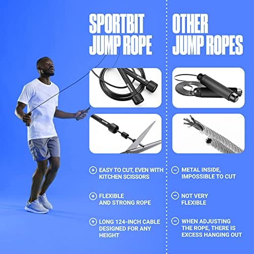 ADJUSTABLE: The SPORTBIT jump rope for fitness is easy to cut and customize. You can even use kitchen scissors when adjusting the size of your skipping rope. This jump rope for men, women, and kids is 118 inches long, so it’ll work for any height! Plus, no internal wires or metallic parts guarantees you safety and ease of use.
