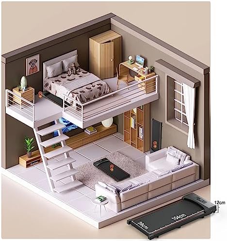 【EASY TO MOVE AND STORE】The thickness of flat slim treadmills for home is only 12cm, could be laid under your working desk, bed or sofa easily with the built-in wheels.