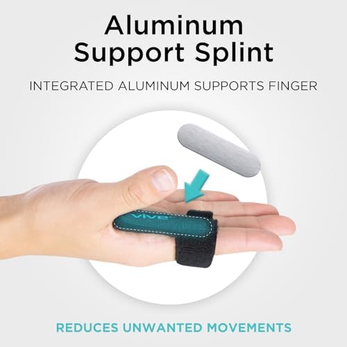 BUILT IN ALUMINUM SUPPORT: Lightweight and curved for superior support, the splint features an integrated, semi-ring aluminum brace. The rigid aluminum brace immobilizes the affected finger joint to guard tendons from catching and the joint from bending to promote healing and reduce pain and discomfort.
