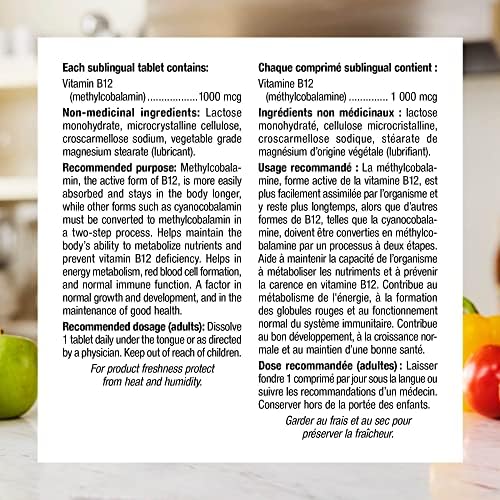 Vitamin B12 methylcobalamin from Webber Naturals is a one-per-day, higher potency, sublingual tablet providing 1000 mcg of the proactive form of vitamin B12 to help prevent and correct vitamin B12 deficiency. These fast-acting, Quick-Dissolve tablets support energy metabolism, immune function, and red blood cell formation, and are suitable for vegetarians.