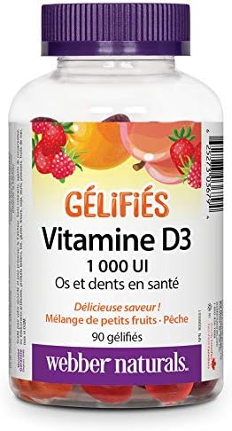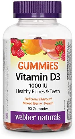 Vitamin D3 Gummies from Webber Naturals offers a convenient and delicious way to get this vital nutrient. Each natural mixed berry and peach-flavoured gummy provides 1000 IU of vitamin D3 for the maintenance of good health. This nutrient is essential for calcium and phosphorous absorption, and the development and maintenance of bones and teeth.